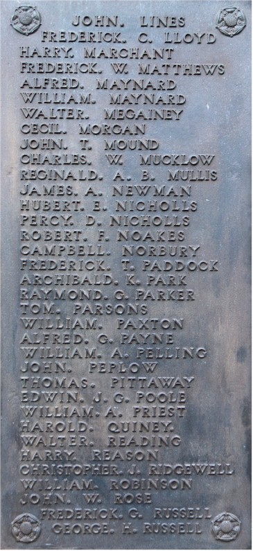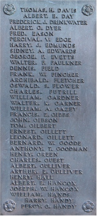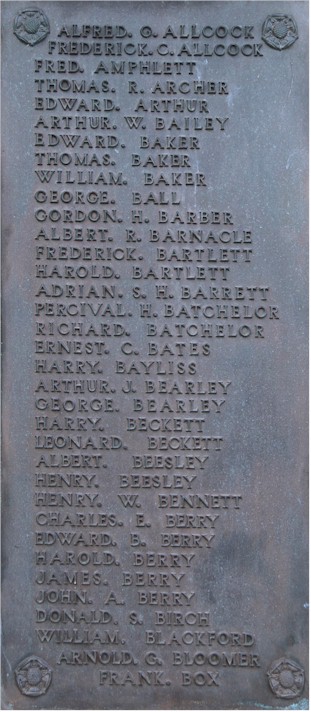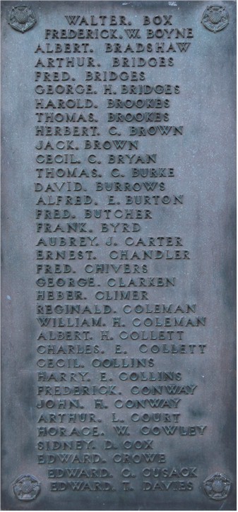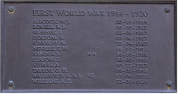Inscription details Inscription ID:266 Brief Description:Stratford on Avon WW1 War Memorial Type:War Memorial Detail:Images of eight name plates of the War Memorial at Stratford on Avon, opposite Holy Trinity Church. Inscription: In grateful memory of the men of Stratford upon Avon who laid down their lives in the Great War 1914-1918. Be worthy of their sacrifice. Place:Straford Upon Avon County:Warwickshire Country:England Date:1914-1918 Contributor:Peter Hagger Photo(s):StratfordOnAvon_WarMemWW1_plate1.jpgStratfordOnAvon_WarMemWW1_plate2.jpgStratfordOnAvon_WarMemWW1_plate3.jpgStratfordOnAvon_WarMemWW1_plate4.jpgStratfordOnAvon_WarMemWW1_plate5.jpgStratfordOnAvon_WarMemWW1_plate6.jpgStratfordOnAvon_WarMemWW1_plate7.jpgStratfordOnAvon_WarMemWW1_plate8.jpg Names:View all names on inscription Do another search
