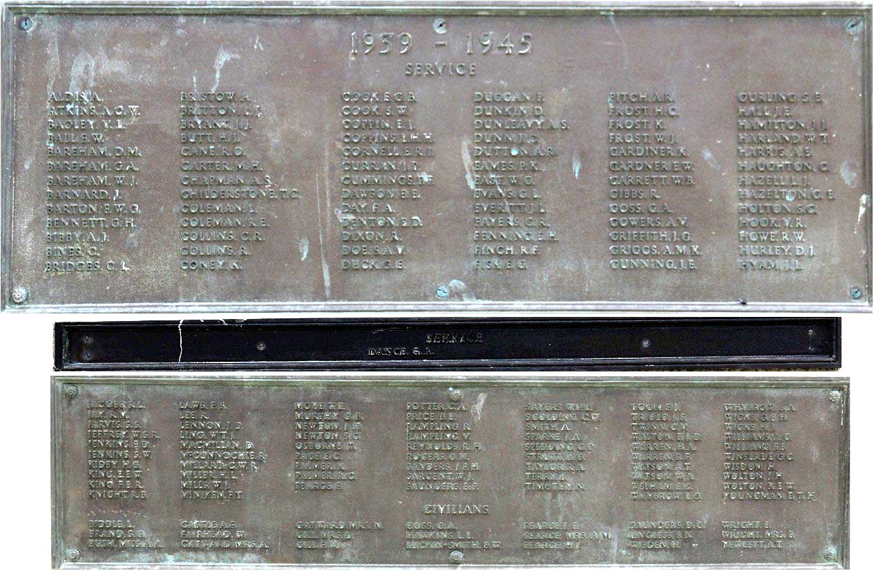 Inscription details Inscription ID:285 Brief Description:War Memorial, WW1, Clacton-on-Sea Type:War Memorial Detail:War Memorial on the seafront at Clacton-on-Sea: panels relating to WW1 and WW2 Inscription:To the glorious memory of those brave men of Clacton who sacrificed their lives in the Great War and the Second World War. Place:Seafront, Clacton-on-Sea County:Essex Country:England Date:1914-1918, 1939-1945 Contributor:Peter Hagger Photo(s):ClactonWarMemorial_WW1.jpgClactonWarMemorial_WW2.jpg Names:View all names on inscription Do another search