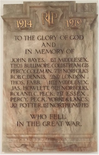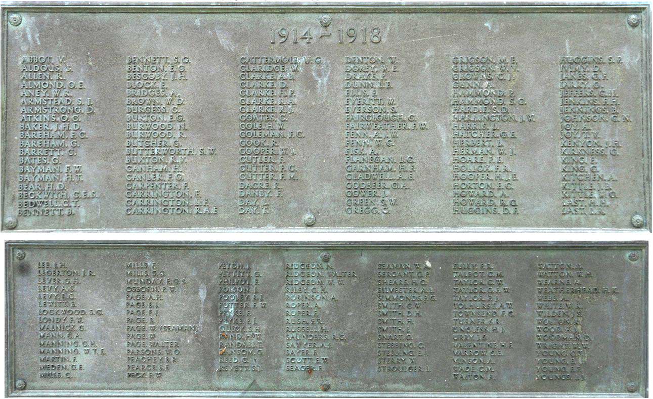 Inscriptions Index search results Search terms:surname : ColemanTotal results: 12 Do another search Title Forenames Surname Year Brief Description Additional detail More info Richard COLEMAN 1919 List 1 of missionaries from St Paul's College Burgh le Marsh InfoImage Private W COLEMAN Northampton Boer War Memorial Northamptonshire Regiment InfoImage Reginald COLEMAN Stratford on Avon WW1 War Memorial InfoImage William H COLEMAN Stratford on Avon WW1 War Memorial InfoImage S A COLEMAN WW2 War Memorial, Prudential Building, London InfoImage F C COLEMAN War Memorial, WW1, Clacton-on-Sea InfoImage Charles COLEMAN WW1 War Memorial at Corsham, Wiltshire InfoImage Percy COLEMAN WW1 War Memorial at Edgefield, Norfolk 7th Norfolks InfoImage P H COLEMAN WW1 Roll of Honour for WW1 in Edgefield Church, Norfolk InfoImage T A COLEMAN WW1 Roll of Honour for WW1 in Edgefield Church, Norfolk InfoImage J G COLEMAN WW1 Roll of Honour for WW1 in Edgefield Church, Norfolk InfoImage H F COLEMAN WW1 Roll of Honour for WW1 in Edgefield Church, Norfolk InfoImage End of displayed results. Do another search
