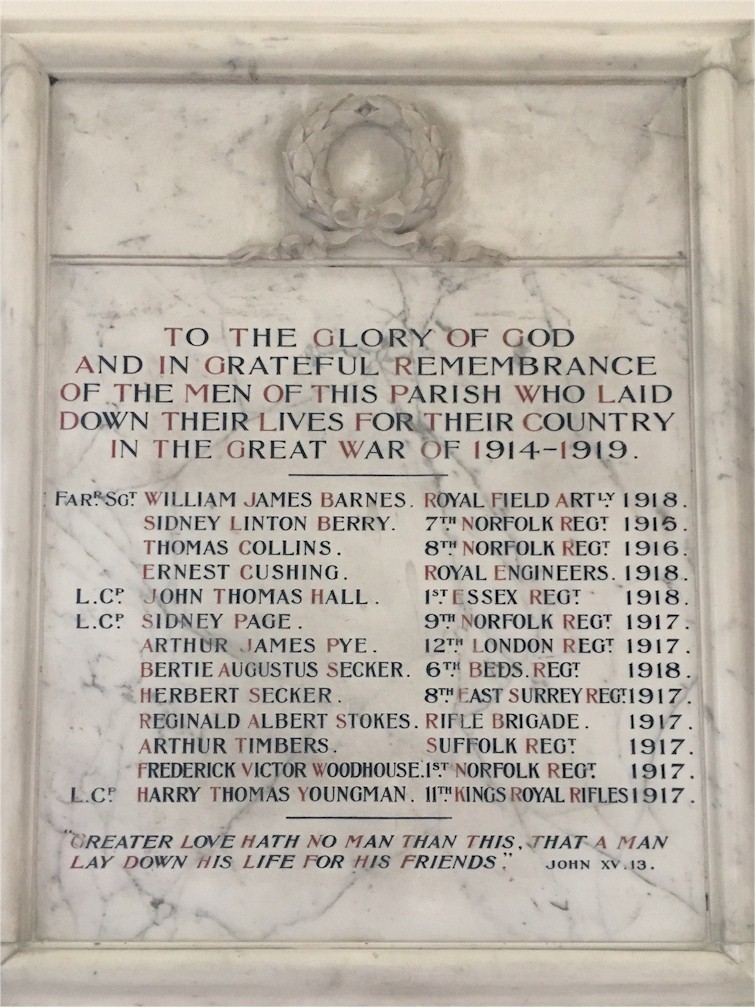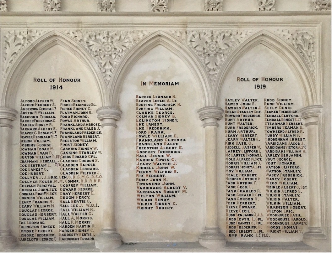 Inscriptions Index search results Search terms:surname : WoodhouseTotal results: 14 Do another search Title Forenames Surname Year Brief Description Additional detail More info T WOODHOUSE 2006 Honours Board at Saunton Golf Club, Devon 137 InfoImage H WOODHOUSE WW1 Roll of Honour Board at Buxton Church 4th Bn E Yorkshire Regiment InfoImage A E WOODHOUSE WW1 Roll of Honour Board at Buxton Church 2nd/5th Bn Norfolk Regiment InfoImage B S WOODHOUSE WW2 Roll of Honour Board at Buxton Church Royal Norfolk Regt InfoImage Cpl C W WOODHOUSE WW2 Roll of Honour Board at Buxton Church Royal Norfolk Regt InfoImage S E WOODHOUSE 1931 WW2 Roll of Honour board at Christs Hospital School, near Horsham, Surrey 1931-36 InfoImage G C R WOODHOUSE 1922 WW2 Roll of Honour board at Christs Hospital School, near Horsham, Surrey 1922- InfoImage Henry WOODHOUSE 1602 List of Rectors of Smallburgh, Norfolk InfoImage Harold B WOODHOUSE WW2 Roll of Honour at Smallburgh Church, Norfolk 22-Jul-44 InfoImage Henry de C A WOODHOUSE WW2 War Memorial from Farncombe, Surrey, UK. WW2 InfoImage Basil WOODHOUSE War Memorial WW1 InfoImage Harold WOODHOUSE War Memorial WW1 InfoImage Harvey WOODHOUSE War Memorial WW1 InfoImage Frederick Victor WOODHOUSE War Memorial WW1 at Reepham, Norfolk InfoImage End of displayed results. Do another search