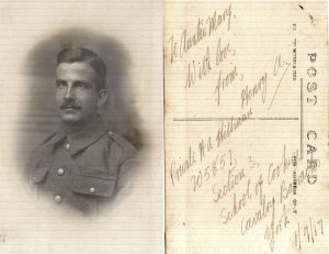 Many years later I began to do research on Great Uncle Henry – fondly known to my father as “Uncle Alfie” from his second name. I quickly came up against a brick wall with the attempt to acquire his service record from the Historical Disclosures Section of the Army Personnel Centre. I even had his Service Number, or so I thought, from a photo card of which I have copies, that he sent to a number of relatives. The response came back that there was no trace found for the name or number, and thus his record must be one of those lost to fire during the Second World War. I also learned later that Service Numbers were not necessarily with a man throughout the War, but could be changed on transfers.